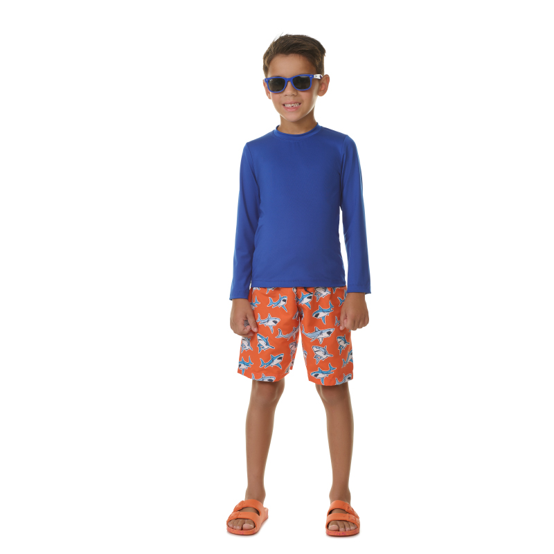 Linda camiseta com proteção UV de manga comprida, sem estampa para os meninos da marca Bicho Bagunça. Camiseta com proteção UV, manga comprida e gola redonda. Perfeito para os dias de praia ou piscina.